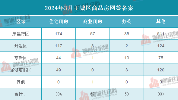 聊城主城区2024年4月份商品房网签备案数据汇总