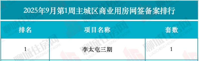商业用房方面,共有1个项目进行网签备案,项目为李太屯三期,网签备案套数为1套。
