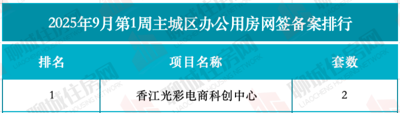 办公用房方面,共有1个项目进行网签备案,项目为香江光彩电商科创中心,网签备案套数为2套。