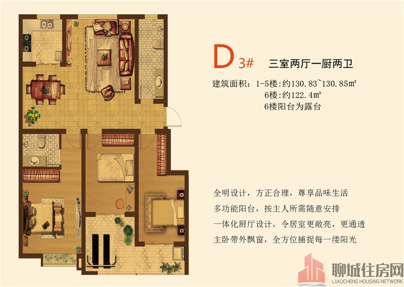 全明设计,方正合理,尊享品味生活 多功能阳台,按主人所需随意安排 一体化厨卫设计,令居室更敞亮,更通透 主卧带外飘窗,全方位捕捉每一缕阳光