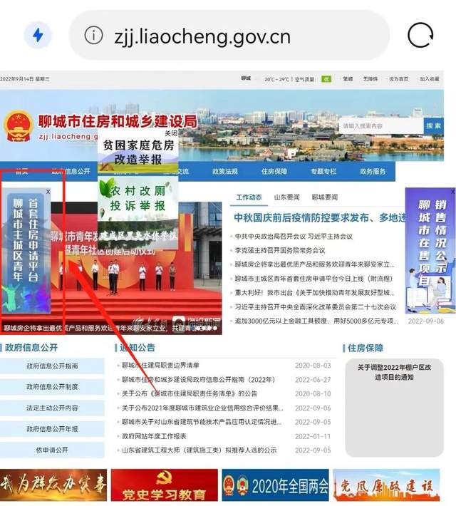 在“聊城市人民政府官网”、“聊城市住建局官网”均有进入“聊城市主城区青年首套住房申请平台”的入口,点击左侧的悬浮窗即可进入。