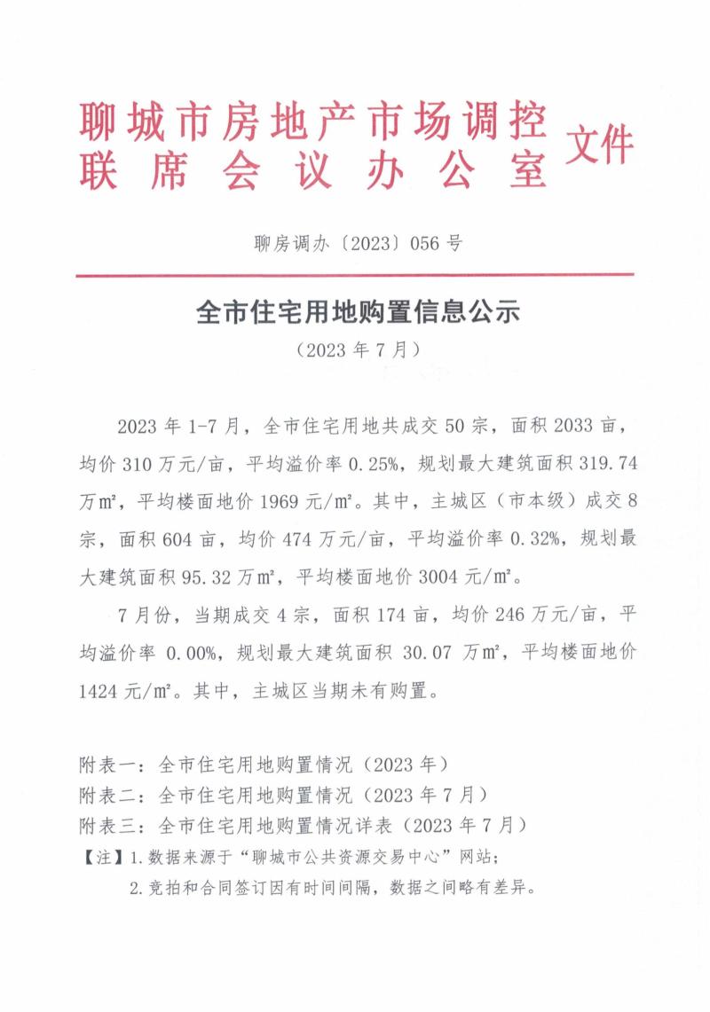 附表三:全市住宅用地购置情况详表(2023年7月)