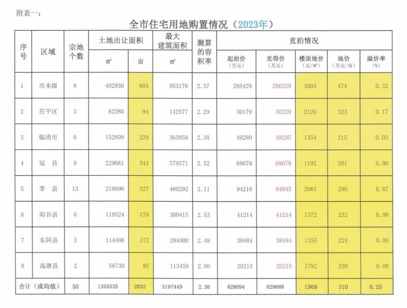 2023年1-7月,全市住宅用地共成交50宗,面积2033亩, 均价310万元/亩,平均溢价率0.25%,规划最大建筑面积319.74 万m² , 平均楼面地价1969元/m² 。其中,主城区(市本级)成交8 宗,面积604亩,均价474万元/亩,平均溢价率0.32%,规划最大建筑面积95.32万m² , 平均楼面地价3004元/m²。