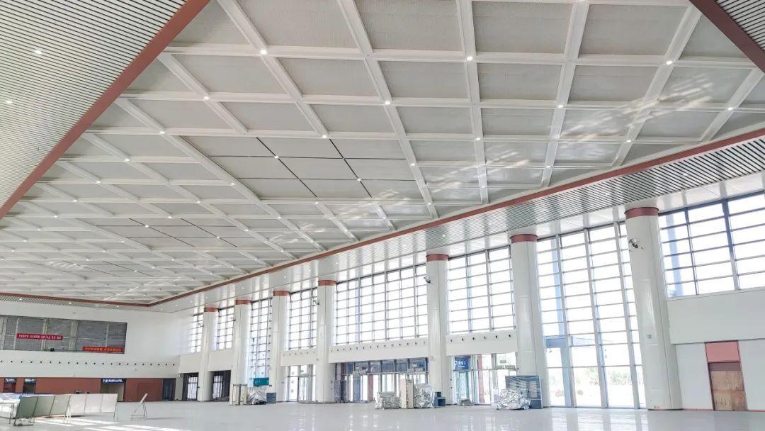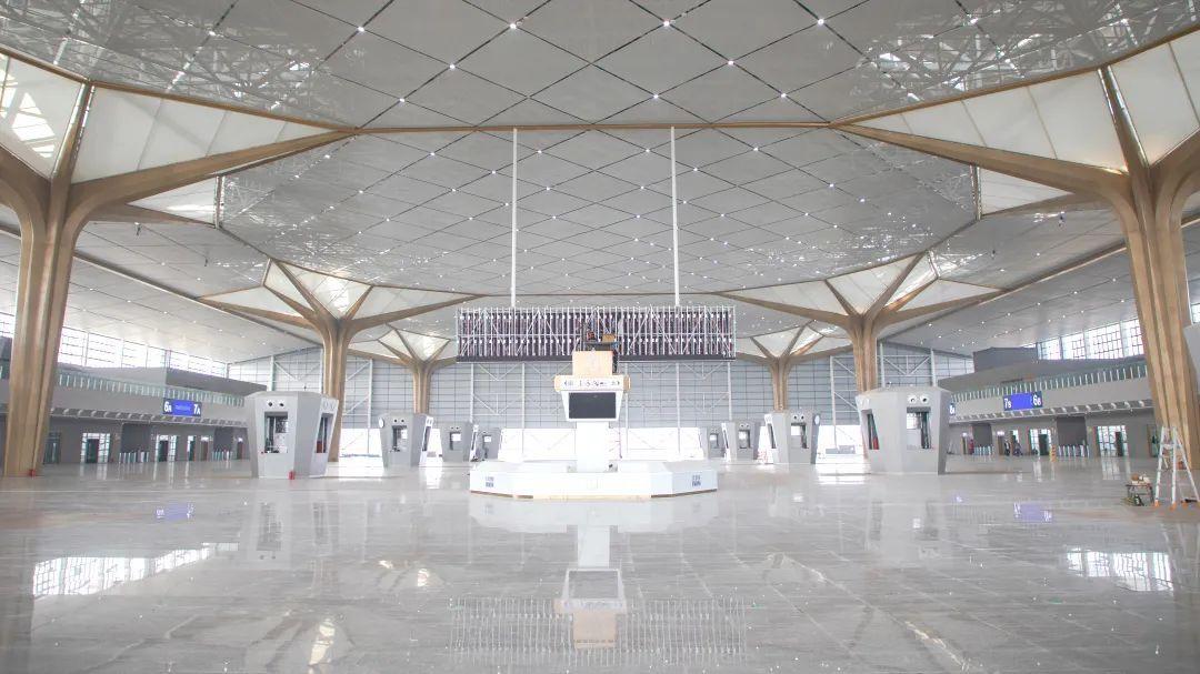 站房设计以“红色莘县,高塔燕来”为主题,整体采用浅灰色调,局部点缀仿木色,在营造现代交通空间的同时增加人文气息。