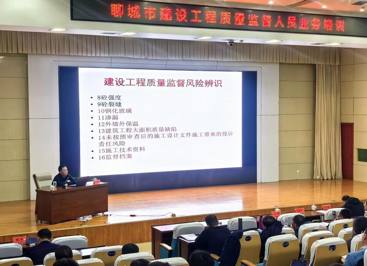 为进一步加强全市建设工程质量管理,规范建筑与市政工程施工质量控制活动,督促工程质量监督人员更好掌握国家标准,提升从业人员工程质量技术水平,12月13日,聊城市住建局建设工程质量服务保障中心在聊城职业技术学院南校区图书馆报告厅组织开展了全市建设工程质量监督人员业务培训,各县(市、区)建设工程质量监督机构所有监督人员190余人参加培训。培训班由聊城市住建局党组成员、副局长吴国华主持。