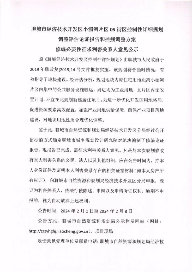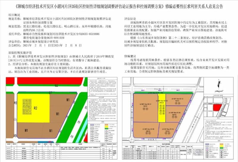 规划名称:聊城市经济技术开发区小湄河片区05街区控制性详细规划调整评估论证报告和控规调整方案
